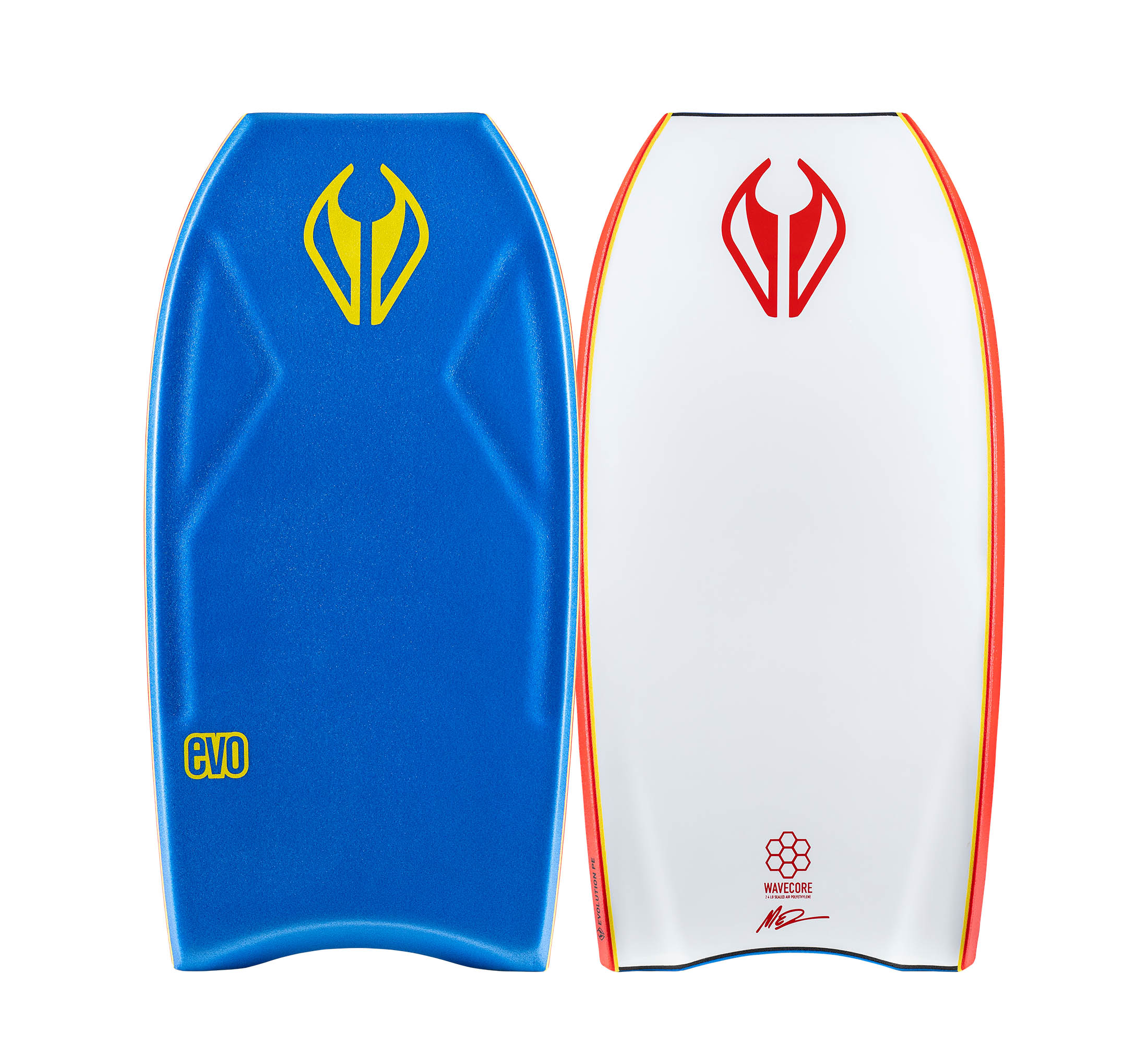 The Evo is a tricked out funboard loaded with high performance features. A higher volume 2.4lb PE core is encapsulated with 8lb NXL deck and a workhorse HDPE bottom skin for a soft yet durable wave riding experience. The Evo is reinforced with double EXT Stringers for torsional flex stability and is equipped with Traxion Deck Contours for positive hand grip in the heaviest conditions. Graduated channels add bite to the back rail edge for increased hold as you fly down the face and drive into the bottom turn. Hand-finished with NMD love, so you know its good. Designed with Shape3D CAD Software.